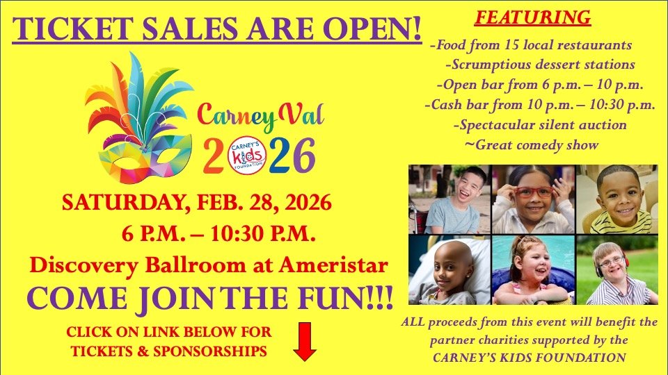 Carney’s Kids Foundation, through COMMUNITY events, FUNDRAISING ACTIVITIES, and media exposure, provideS financial support and createS positive publicity for not-for-profit organizations whose primary goal is to improve the lives of children AND YOUNG ADULTS.